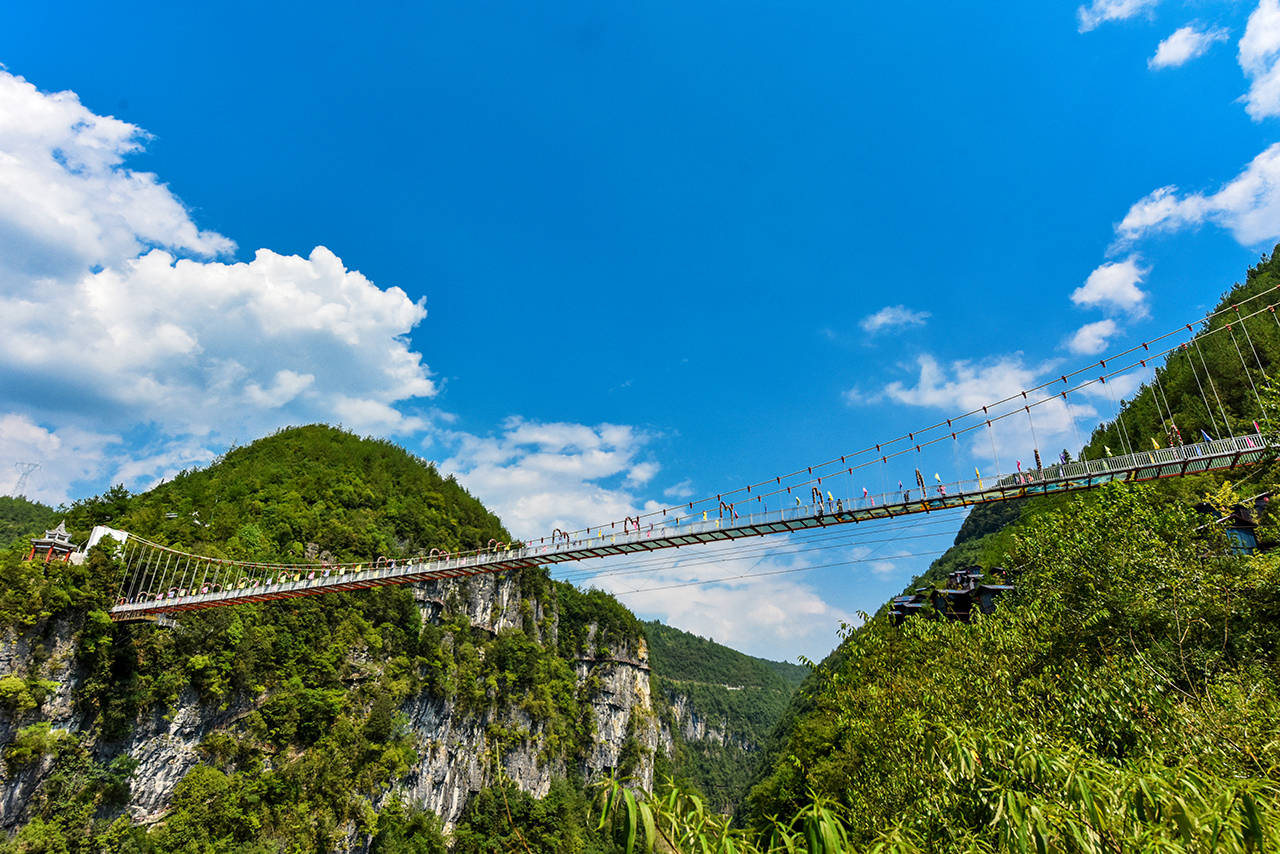 恩施大峡谷地球最美伤痕避暑胜地;恩施大峡谷是世界地质奇观、喀斯特地形地貌天然博物馆,被赞誉可与美国科罗拉多大峡谷媲美,景区内你可以下到深达百米的地缝中,也可以行走在300米高处的悬空栈道上,享受与众不同的刺激感。